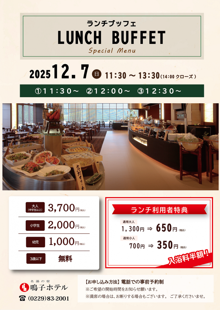 【時間】入場 11:30~13:30迄 (14:00クローズ)