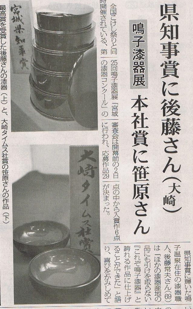 大崎市の鳴子系工人、高橋武俊さん(64)の作品が選ばれました。