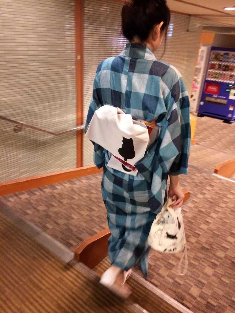 かわいい猫の帯と浴衣でこけし祭りに参上です。