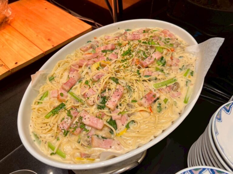 ▲ 地場の冬野菜とベーコンのクリームパスタ