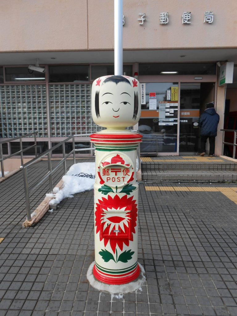 こちらは鳴子郵便局のこけしのポストです。