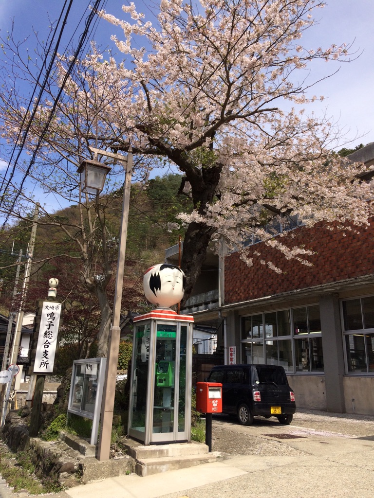鳴子には、こけしの公衆電話があります!