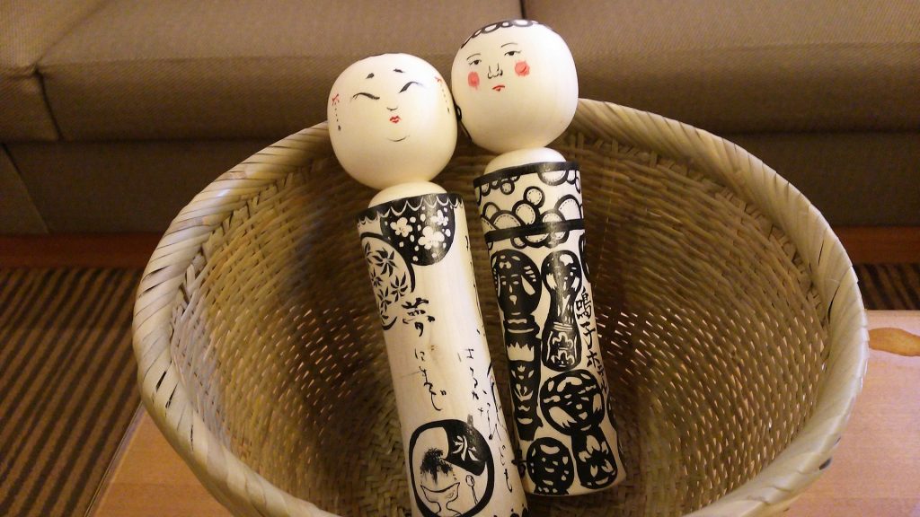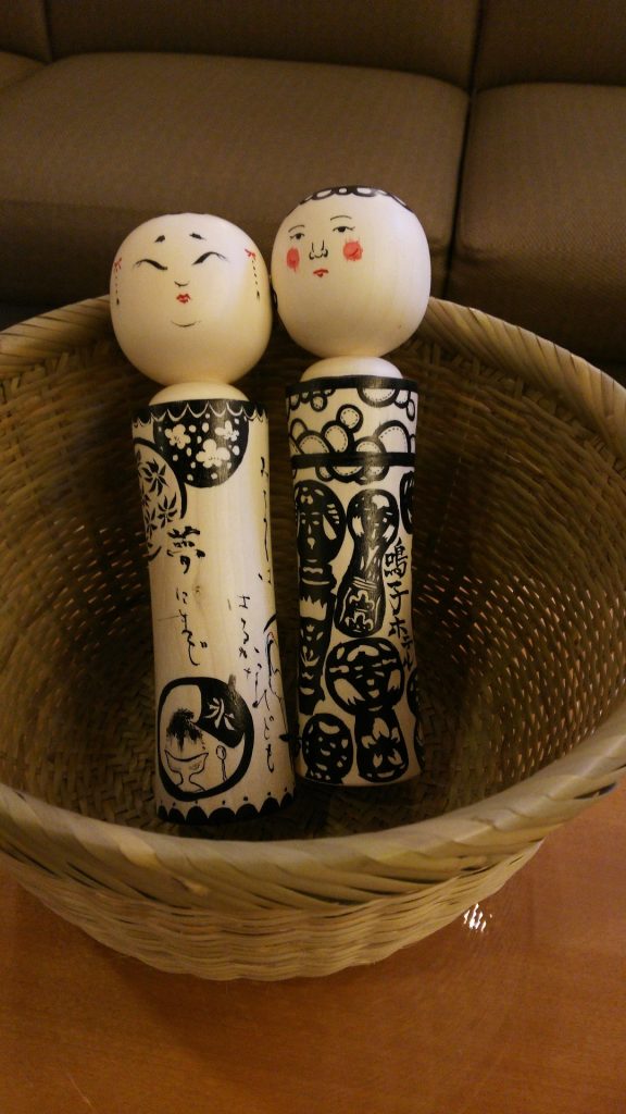 何と当館の浴衣の柄を、こけしに絵づけしてくださいました