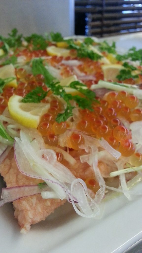 女性に人気のサーモンといくらをサラダにしました。