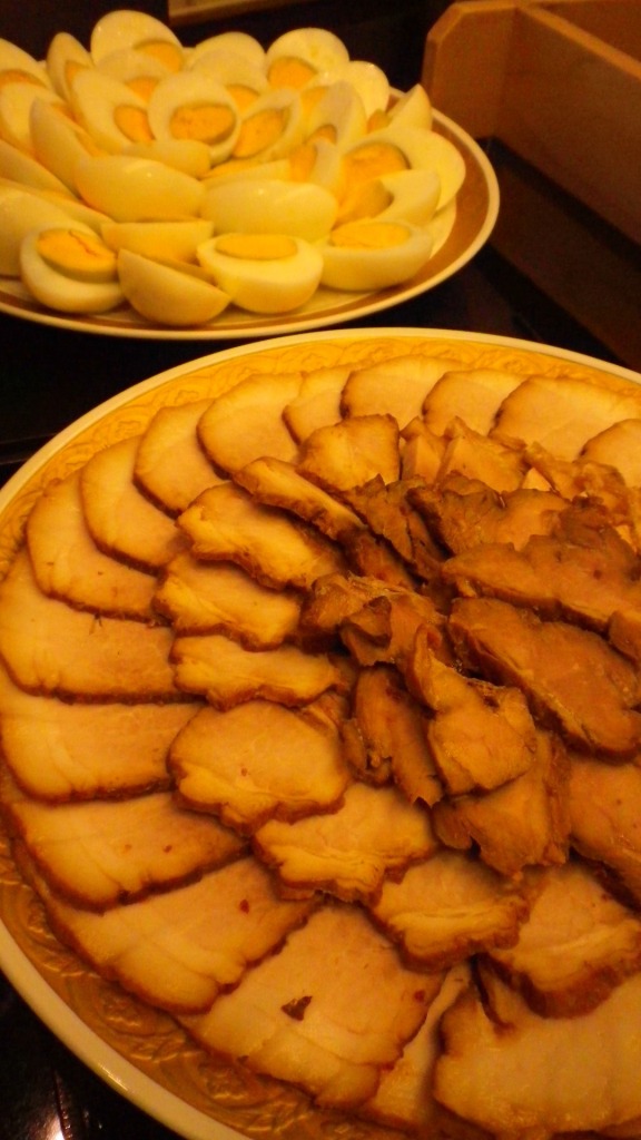 【チャーシュー、玉子、キムチ、カイワレ、ごま、きゅうり、ネギ、すいか】