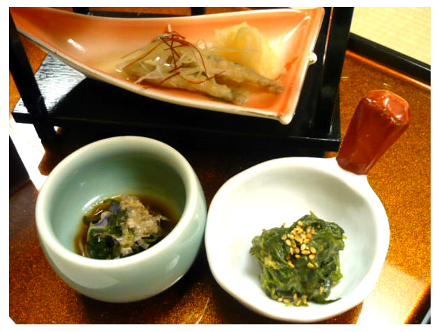 ~かたくりの花、マタタビの芽、稚鮎南蛮漬~