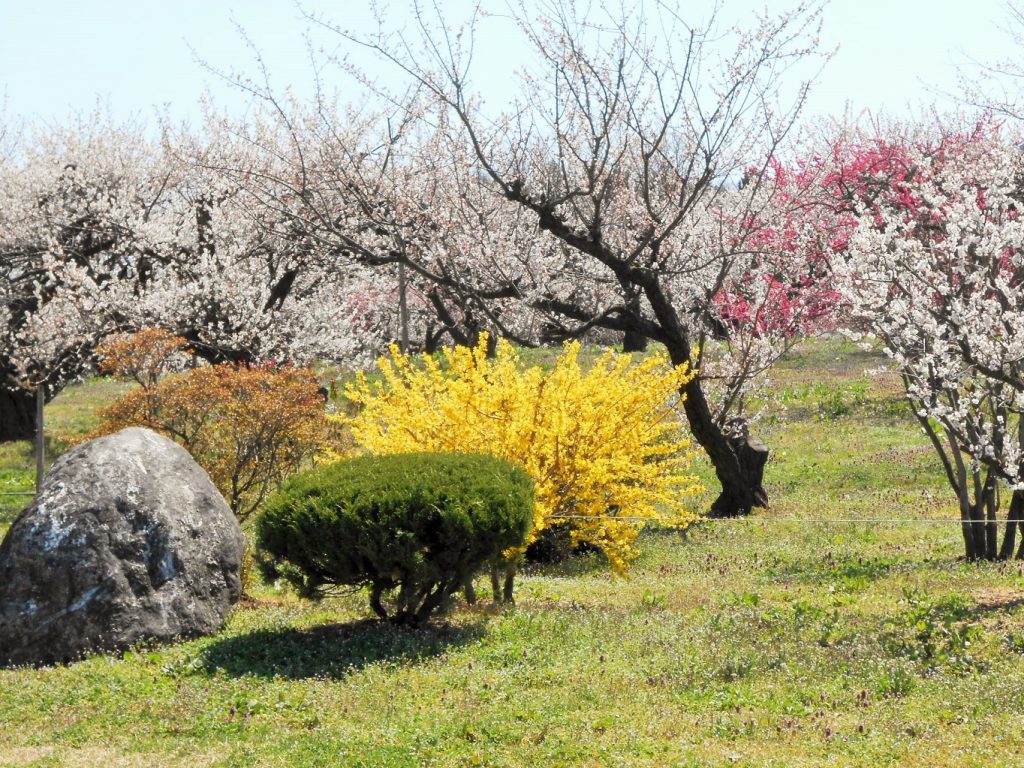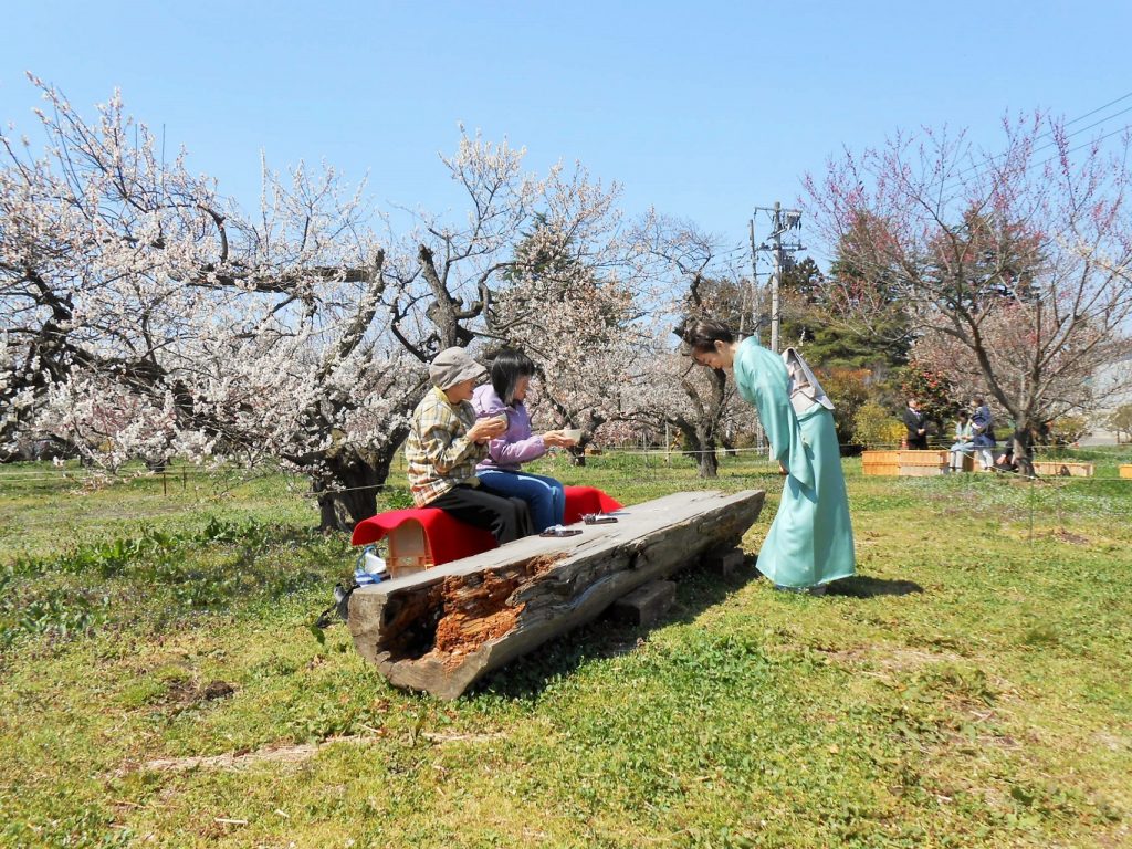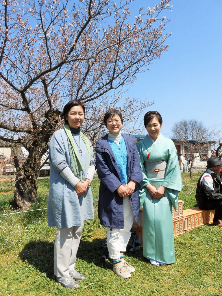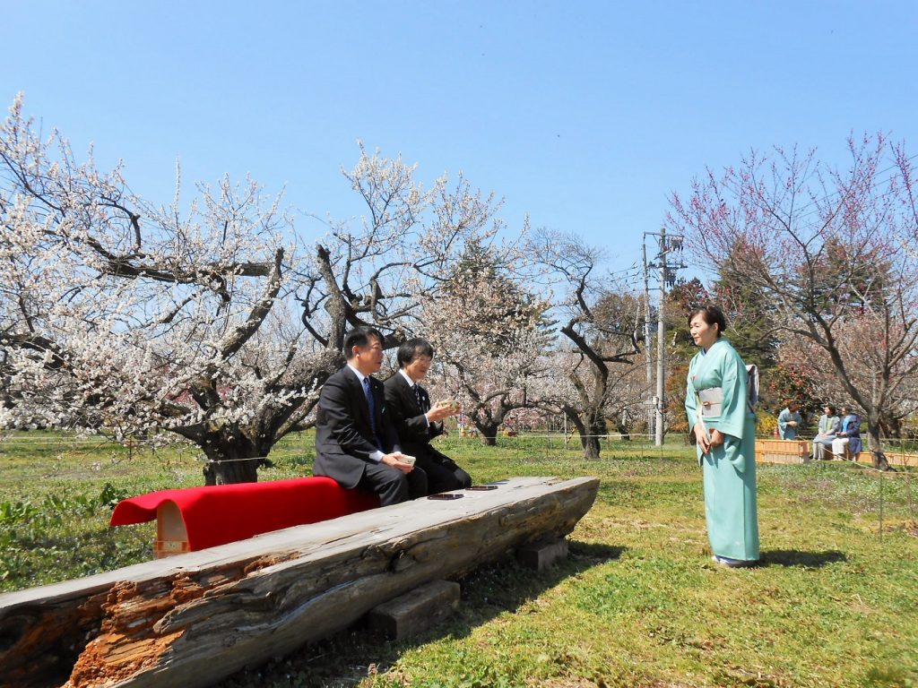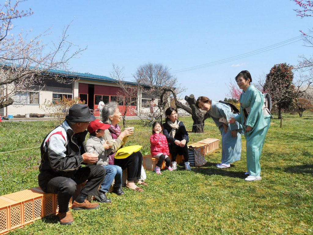 綺麗な梅や桜、レンギョウに囲まれながらのお茶会です。
