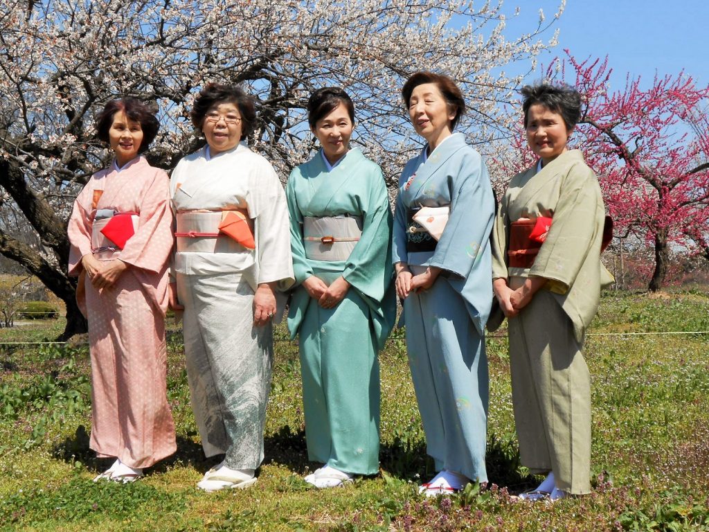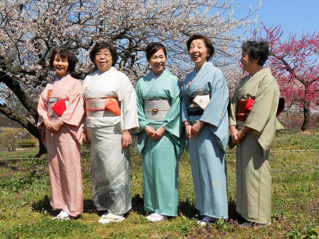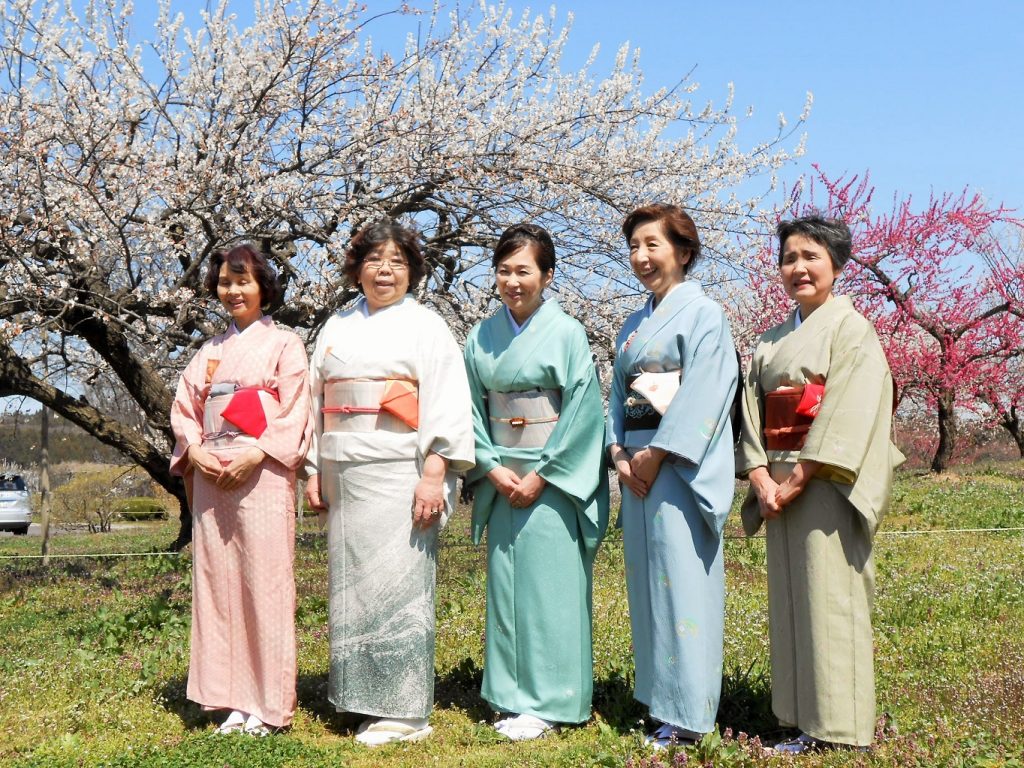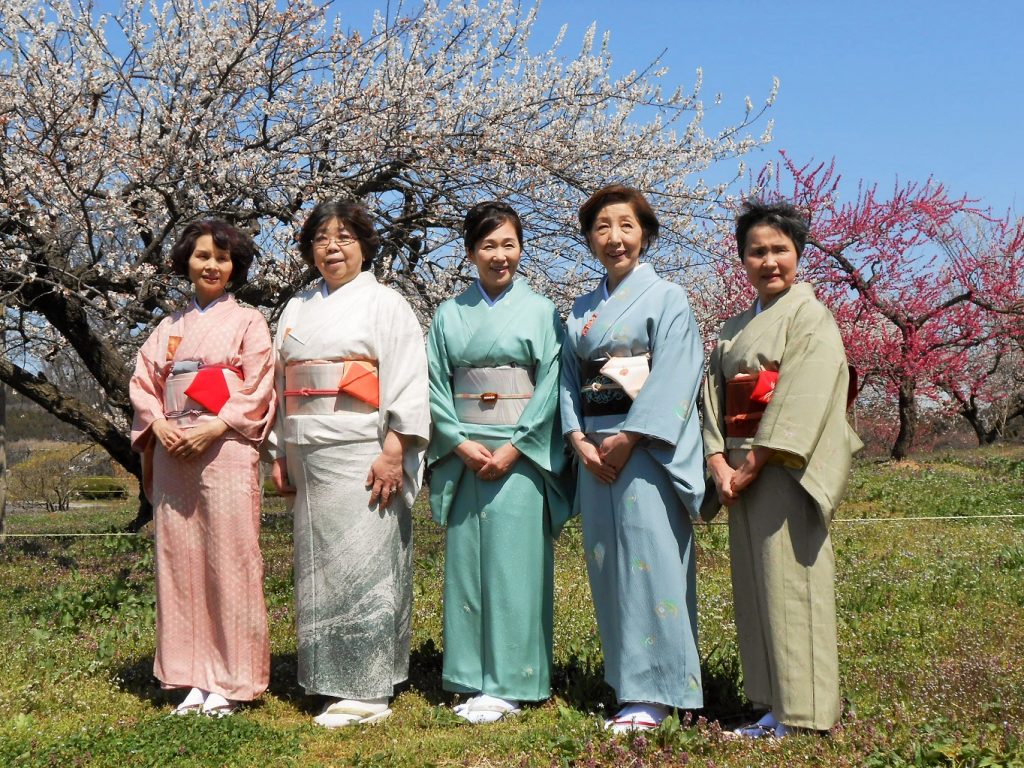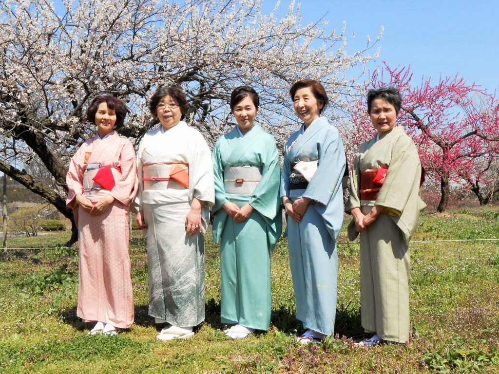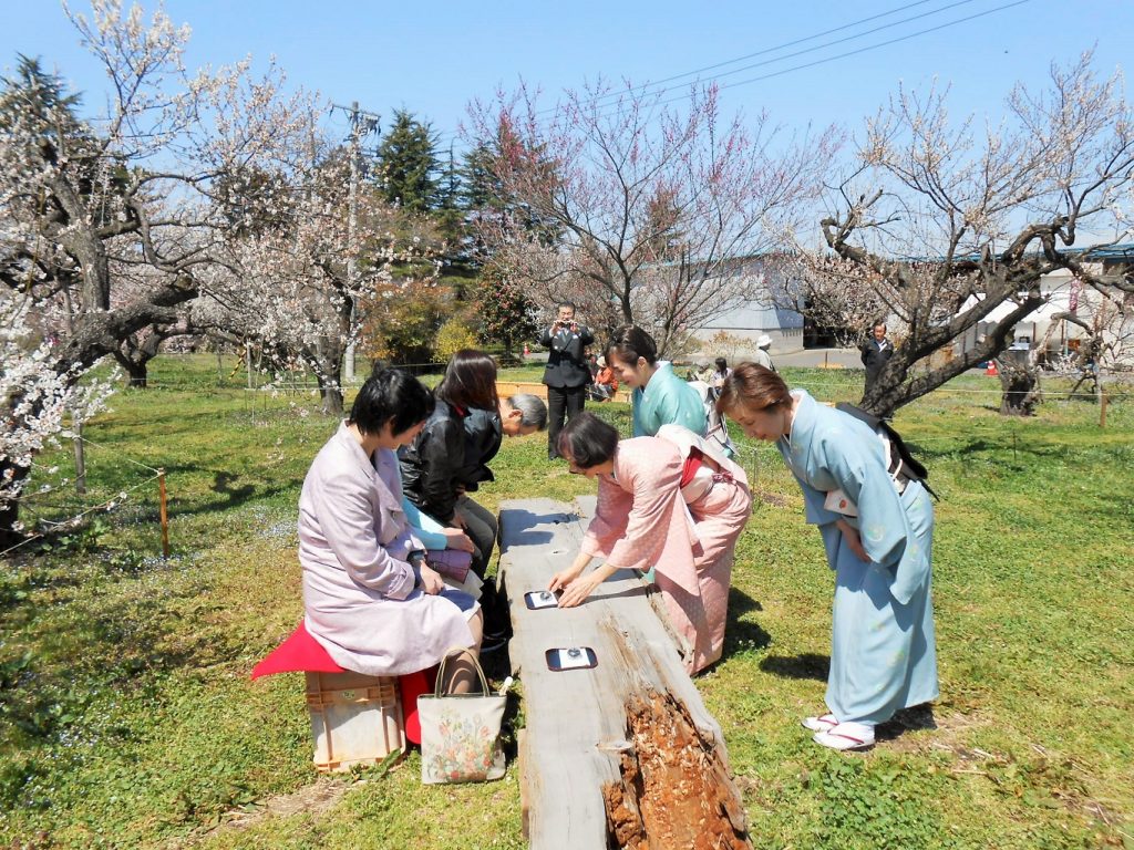 綺麗な梅や桜、レンギョウに囲まれながらのお茶会です。