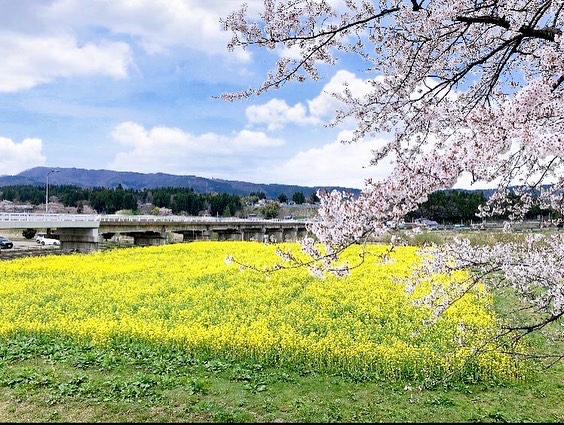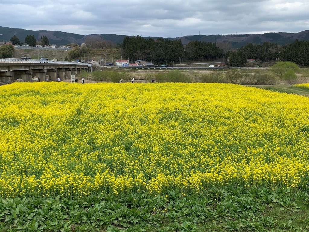 川渡温泉河川敷、菜の花畑が見頃を迎えております。