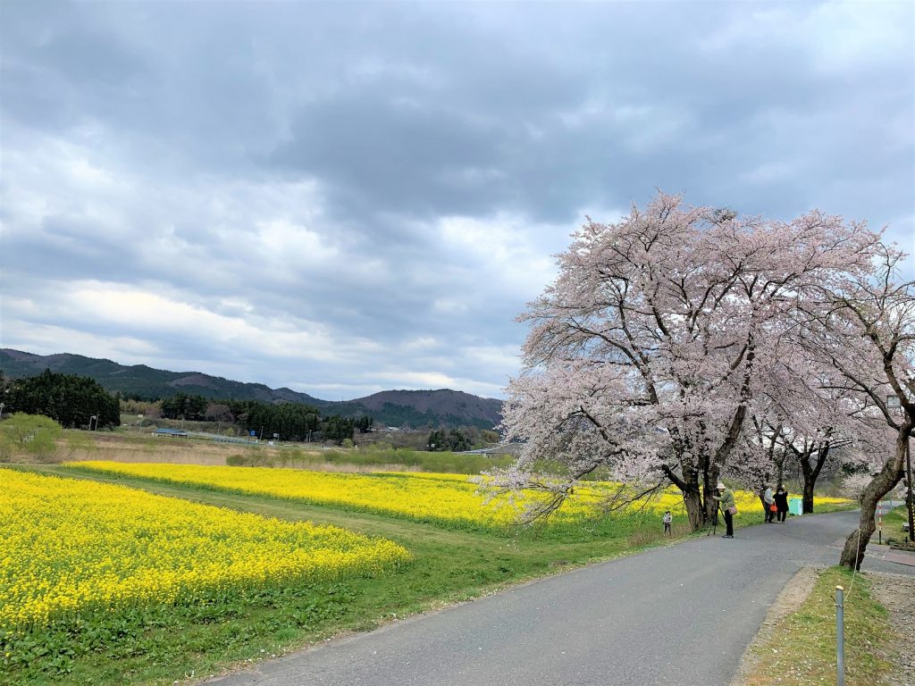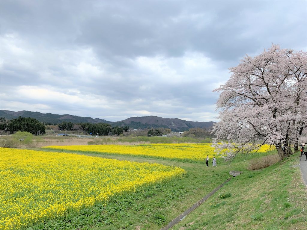 菜の花と桜、黄色とピンクのコラボレーションをお楽しみになれます。