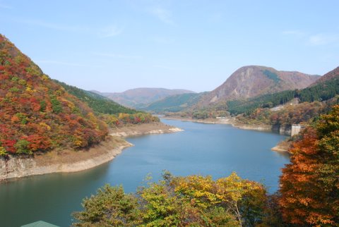 鳴子の紅葉の時期は,山々が色とりどりに紅葉し、