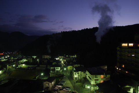 この鳴子温泉街の夜景を観ながら、
