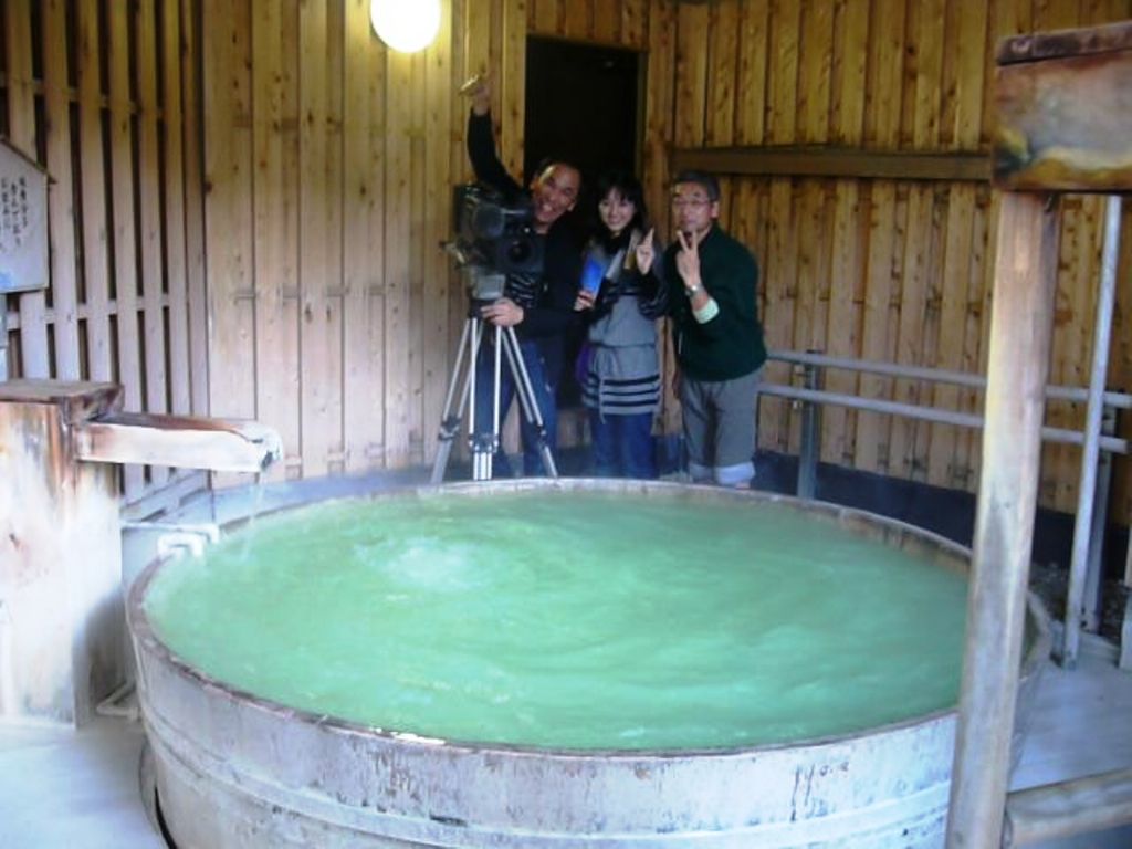↑は高野槇の桶風呂です。綺麗な「鶯色」でした★