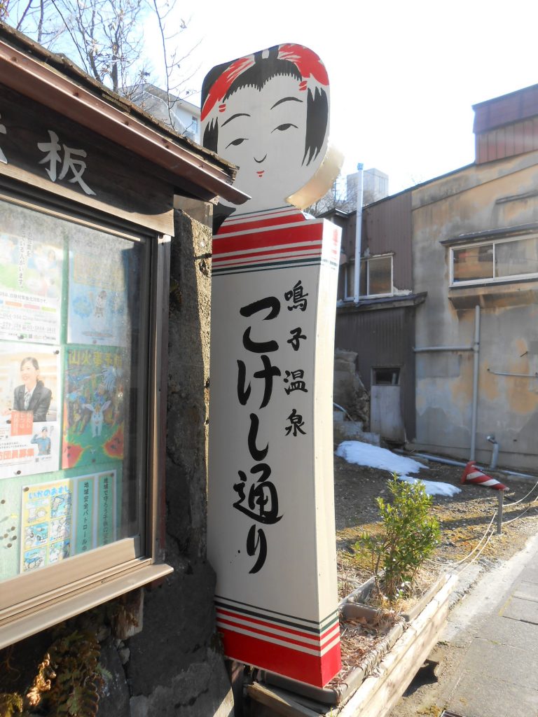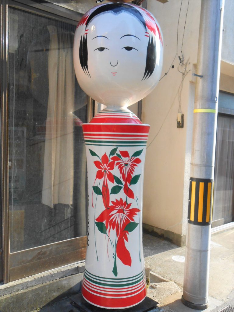入り口のかわいらしい大きなこけしが「桜井こけし店」の目印です。