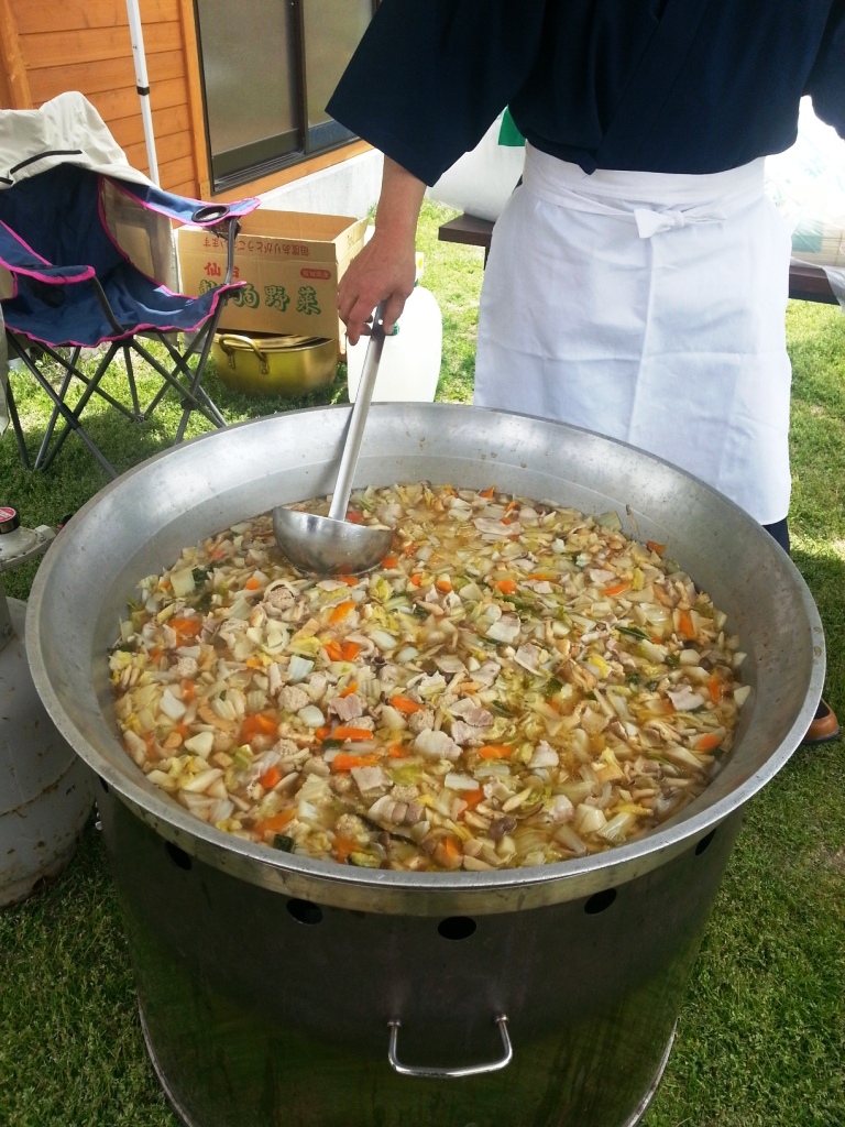 大きなお鍋でつくるちゃんこ鍋は