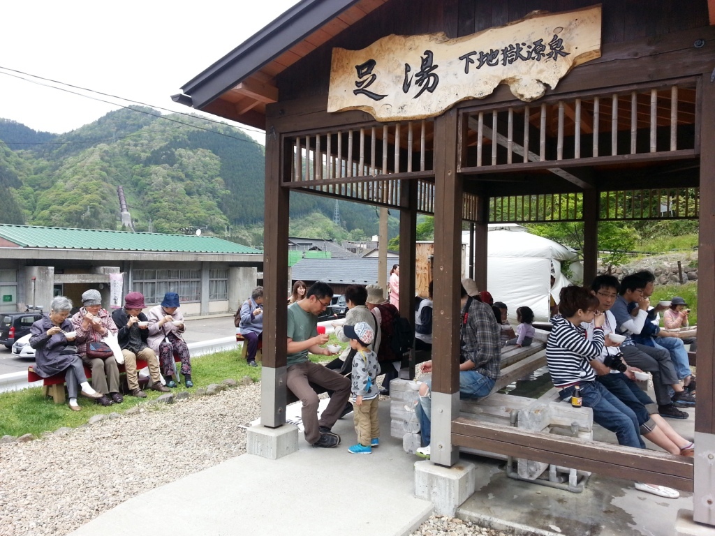 下地獄源泉の足湯にもお客様がいっぱい!