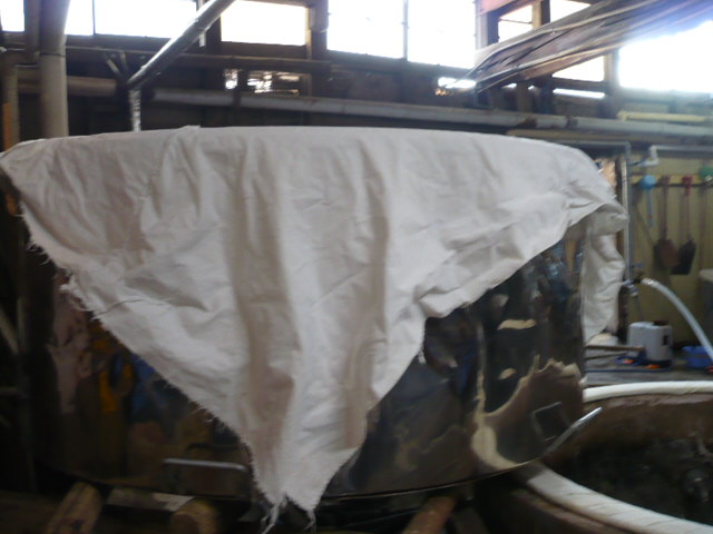 この樽は、とても底が深く、酒づくりは命がけの作業です。