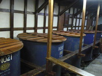 この青い樽は1つで、一升瓶約2000本ができるそうです。
