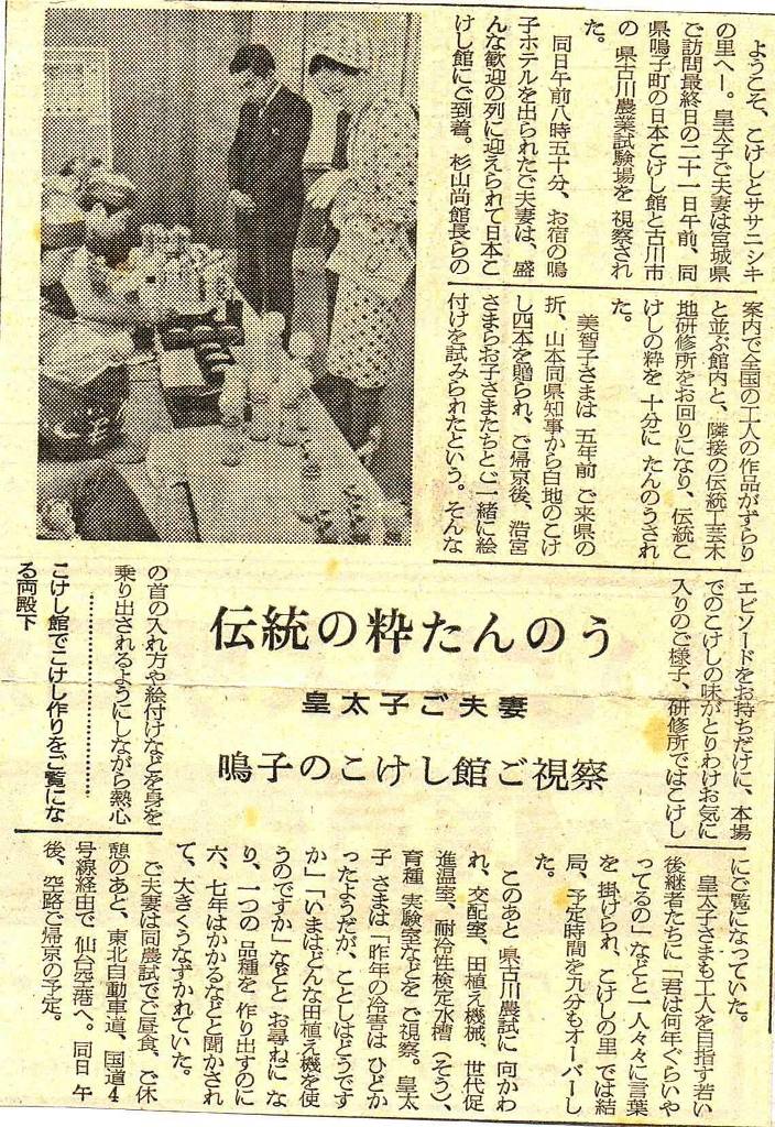 同県鳴子町の日本こけし館と古川市の県古川農業試験場を視察された。