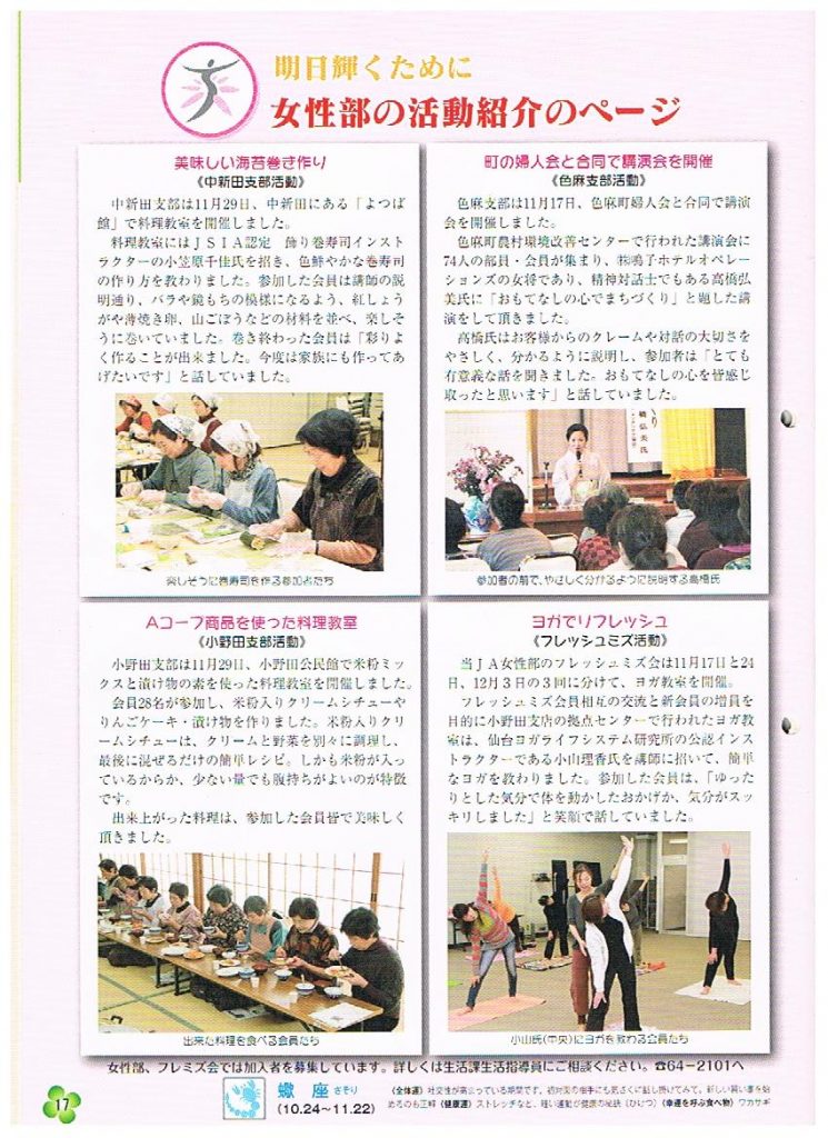 女性部の活動紹介ページで、