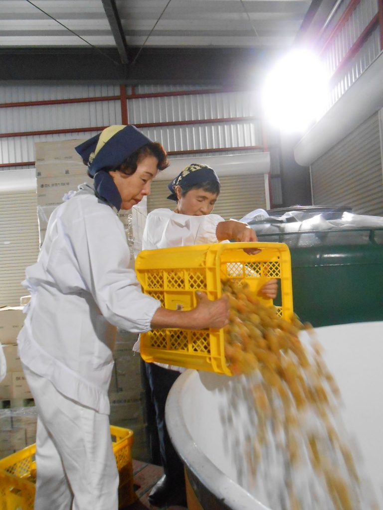 鳴子温泉女将による女将の梅酒づけが行われました。