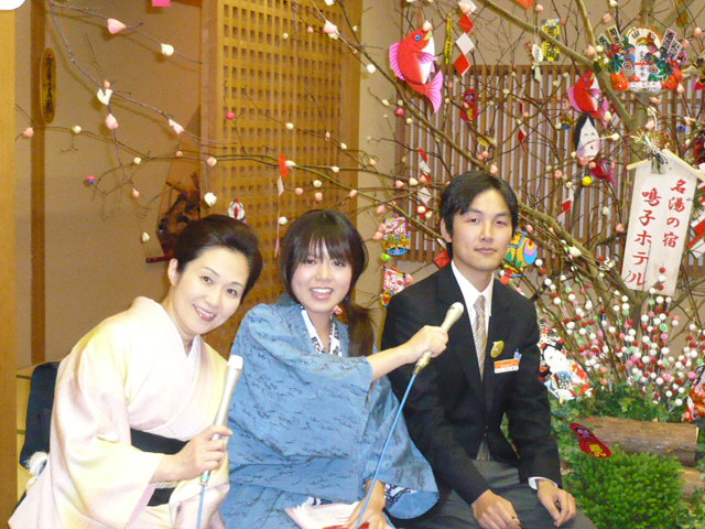 今回は、お正月の装飾が見事! 美しい宴会場前から