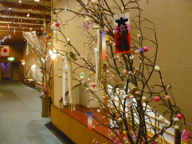 鳴子ホテルでも、お正月の飾りつけを行いました。