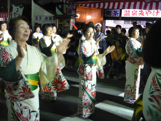 ミスこけしを先頭に、鳴子温泉街を盆踊り♪