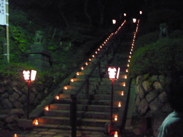 また神社の階段には、鳴子の方々が精魂込めてつくった蝋燭が並べられました。