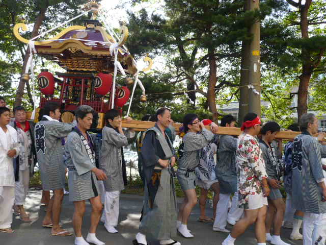 鳴子温泉街を鳴子の男性人でまわる、『神輿渡御』が行われました。