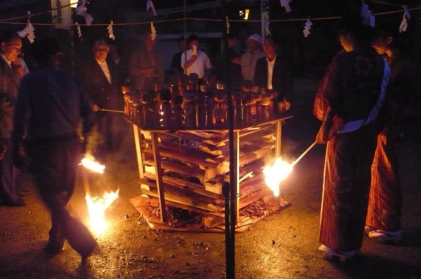 井桁に組んだ櫓とともにお炊き上げをするのです。