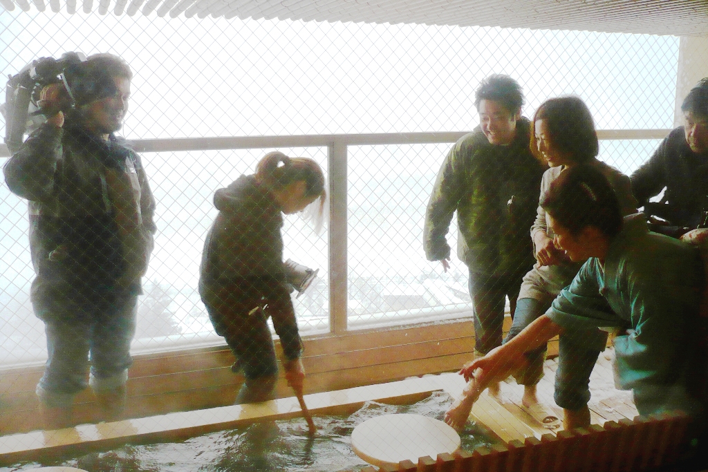鳴子の雪景色を観ながら、足湯に浸かり全身ぽかぽかに。